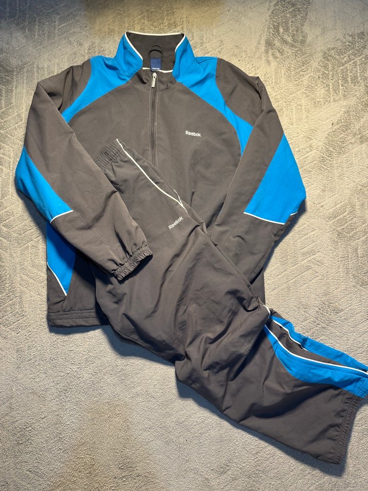 Gri ve mavi renklerde, fermuarlı ve bol kesim erkek eşofman takımı. Yumuşak ve sıcak kumaştan, yakası kesimli ve manşetleri lastiklidir. Trendy casual stil için uygundur.