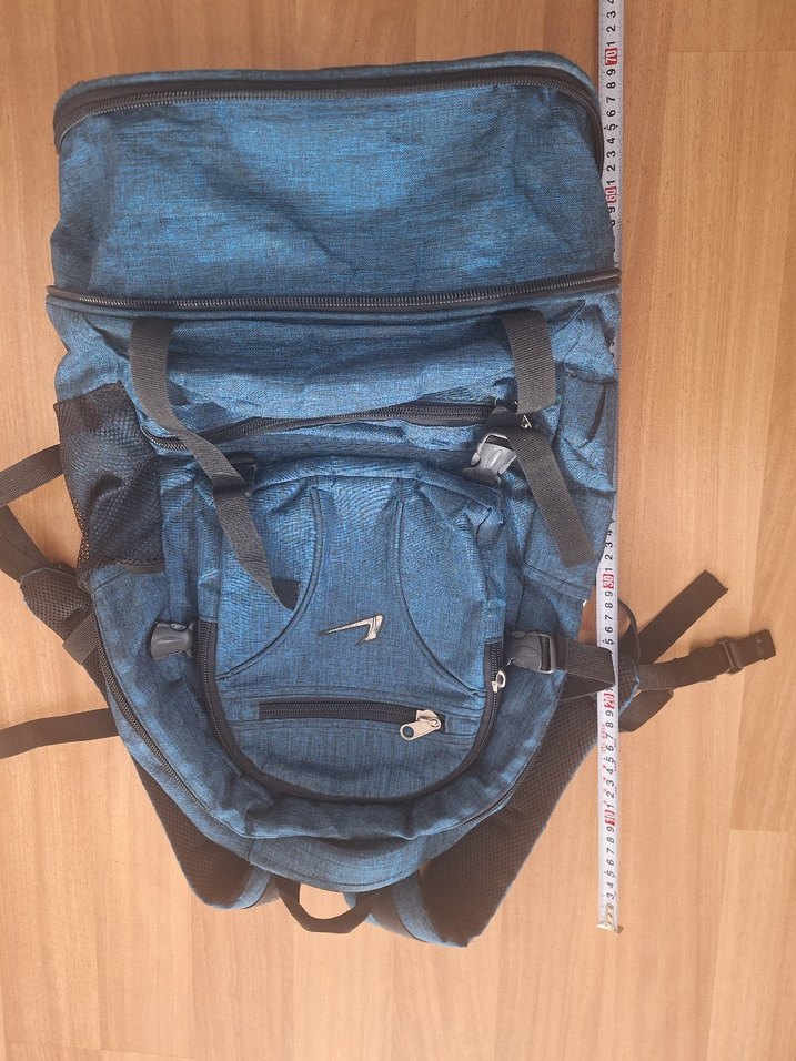Gri-mavi renklerde, fermuarlı ve desen içermeyen erkek sırt çantası. Sokak stili ve athleisure için uygun, sade ve kullanışlıdır. icinde hafif soyulma var, b 1 fermuar sapi yok, onun disinda sapasaglam.