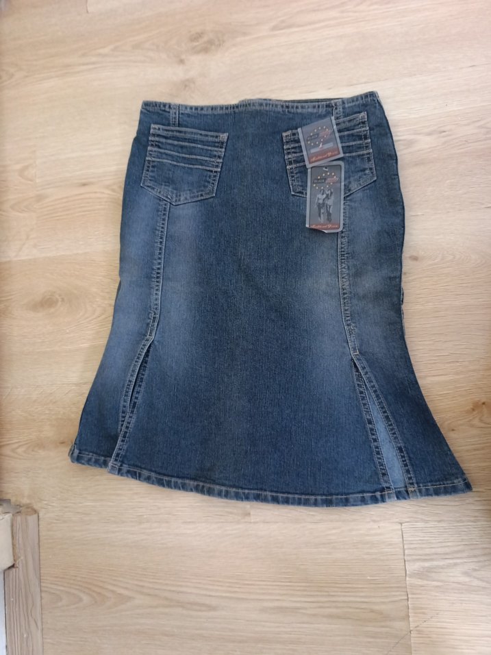 Gri mavi tonlarda, bol kesim ve midi boy hamile kot eteği. Cep detayları ve desen içermeyen tasarımıyla günlük sokak stiline uygun, rahat ve şık.