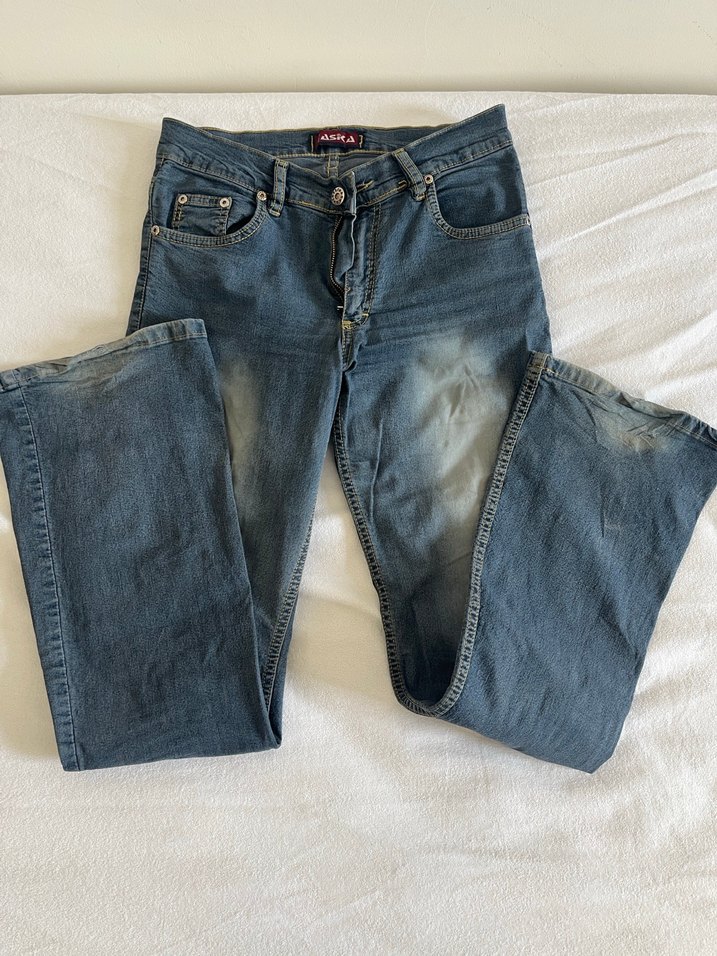 Gri Mavi ispanyol paça Kot Pantolon