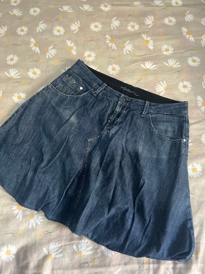 Gri mavi renkli, bol kesim kadın denim etek. Desensiz, günlük kullanıma uygun rahat ve sokak stili görünüm sunar. ✨