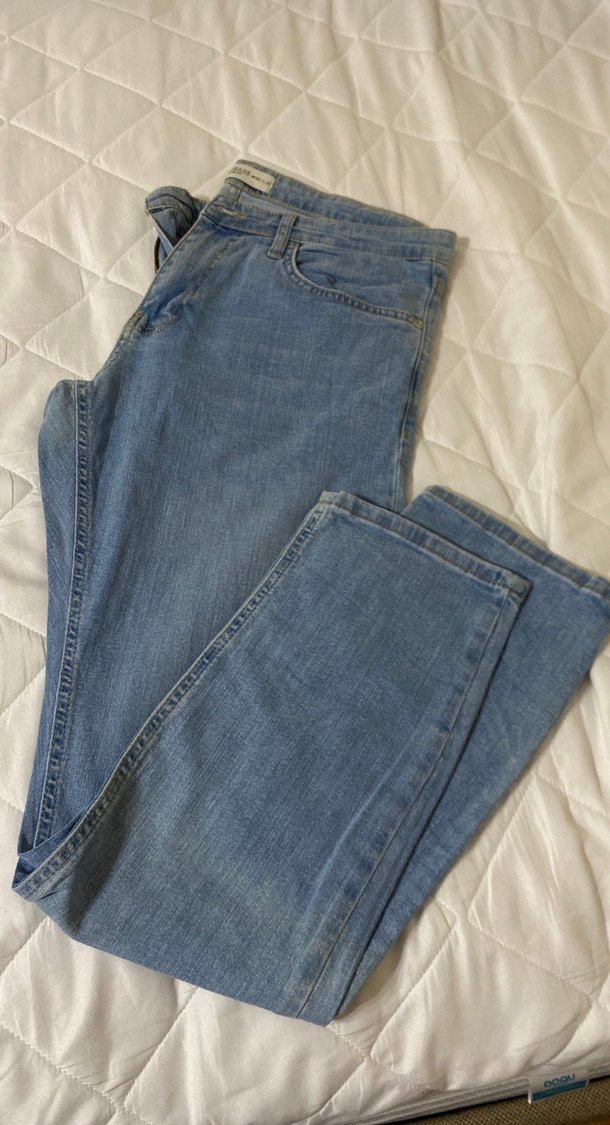 Gri mavi renkte, düz desenli, normal boy ve rahat kesim kadın denim pantolon. Günlük kullanıma uygun, sade ve şık görünüme sahiptir.