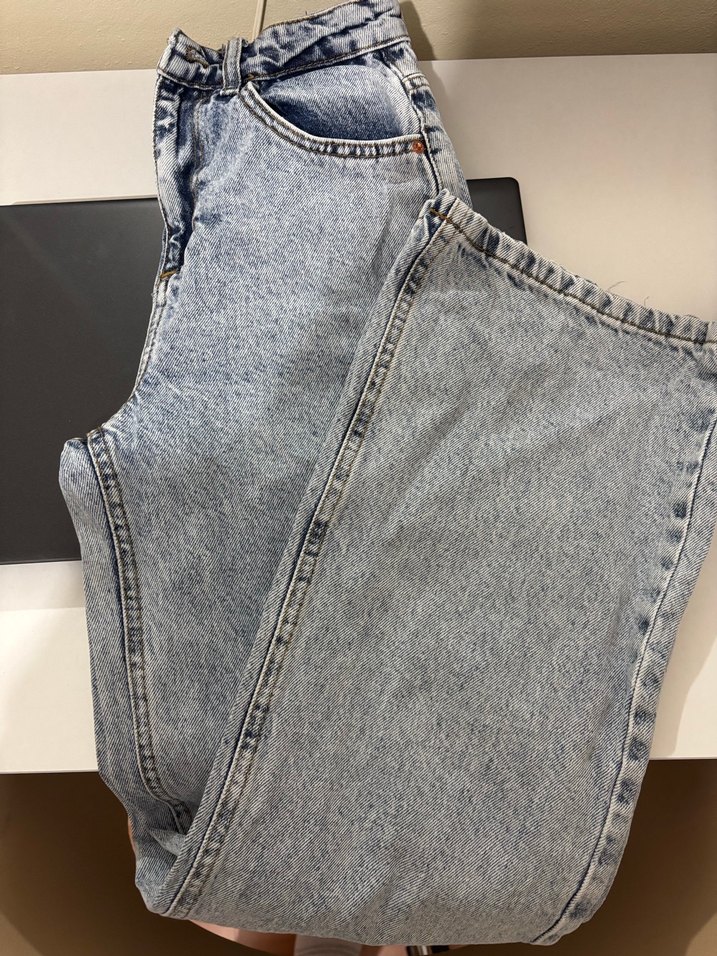 Gri mavi renkli, midi boy ve regular fit kesimli kadın denim pantolon. Sade ve desen içermeyen tasarımıyla günlük sokak stiline uygundur.