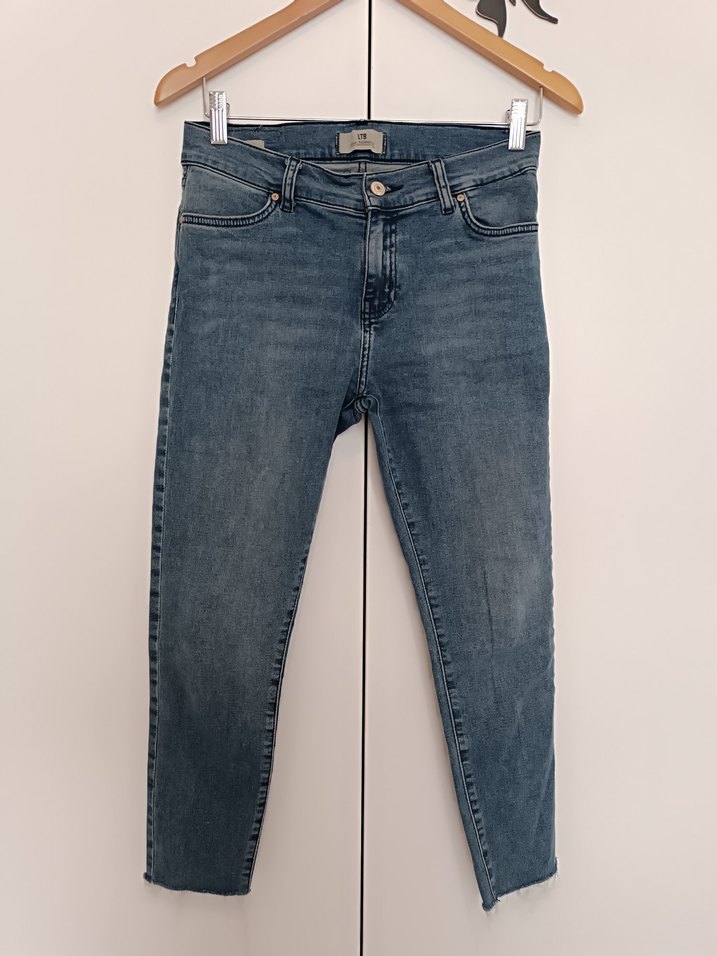 Gri mavi tonlarda kadın denim pantolon, yüksek bel likralı ve midi boy. Günlük kullanım için uygun, desensiz ve rahat şıklık sunar. 36-38 beden uyumlu