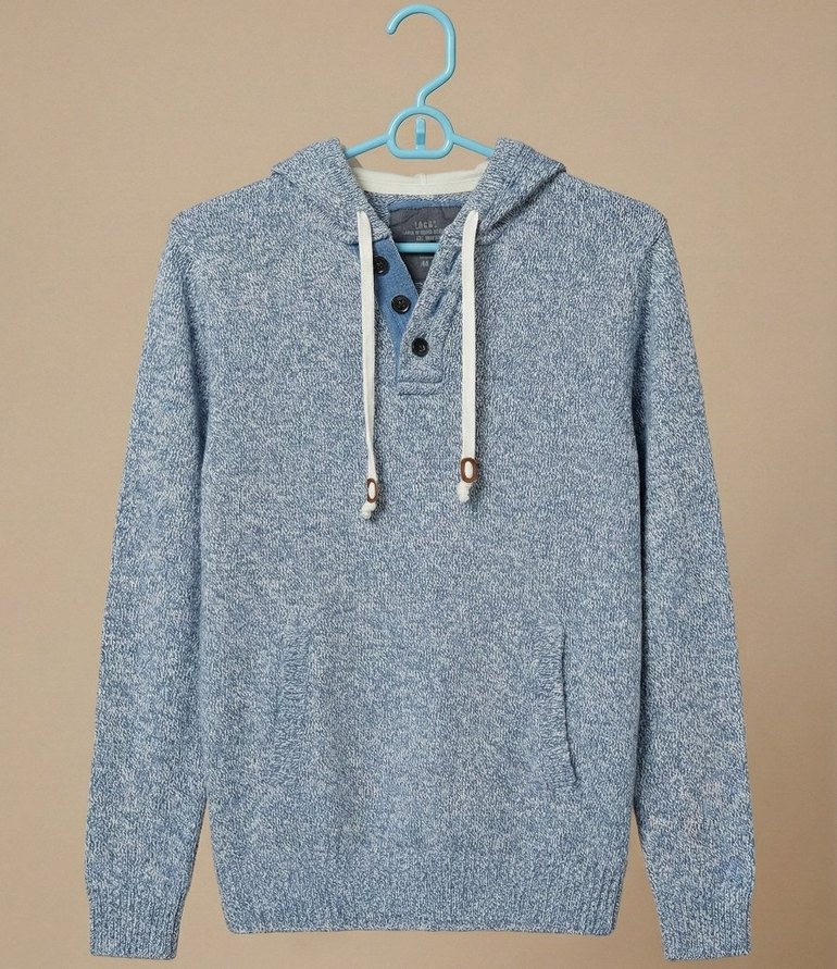 Gri Mavi Kapüşonlu Erkek Triko Kapüşonlu Kazak