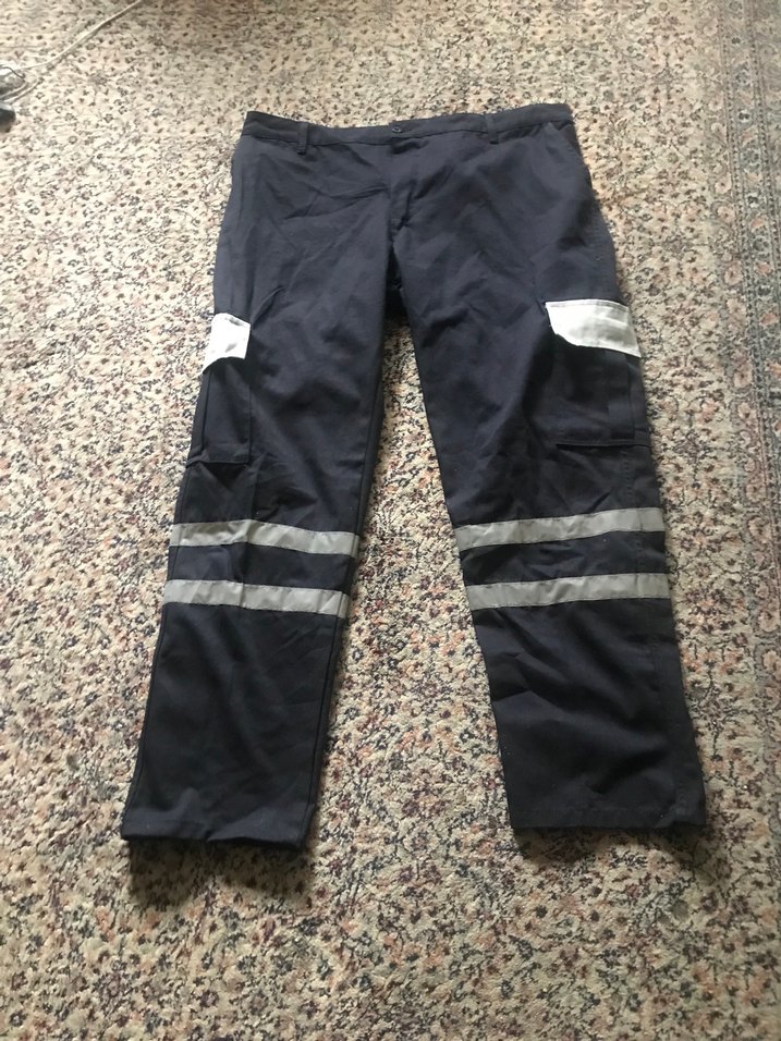 Gri mavi renkte, kemerli ve sentetik kumaştan üretilmiş erkek regular fit midi boy pantolon. Dış mekan kullanımı için uygun, reflektör bantlı ve desensiz model.