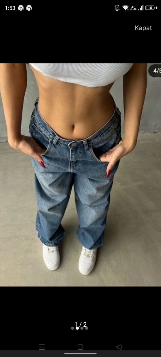 Gri mavi tonlarında, midi boyda, bol kesim denim kot pantolon. Günlük kullanım için rahat ve şık bir sokak stili sunar. baggy kemerli kot