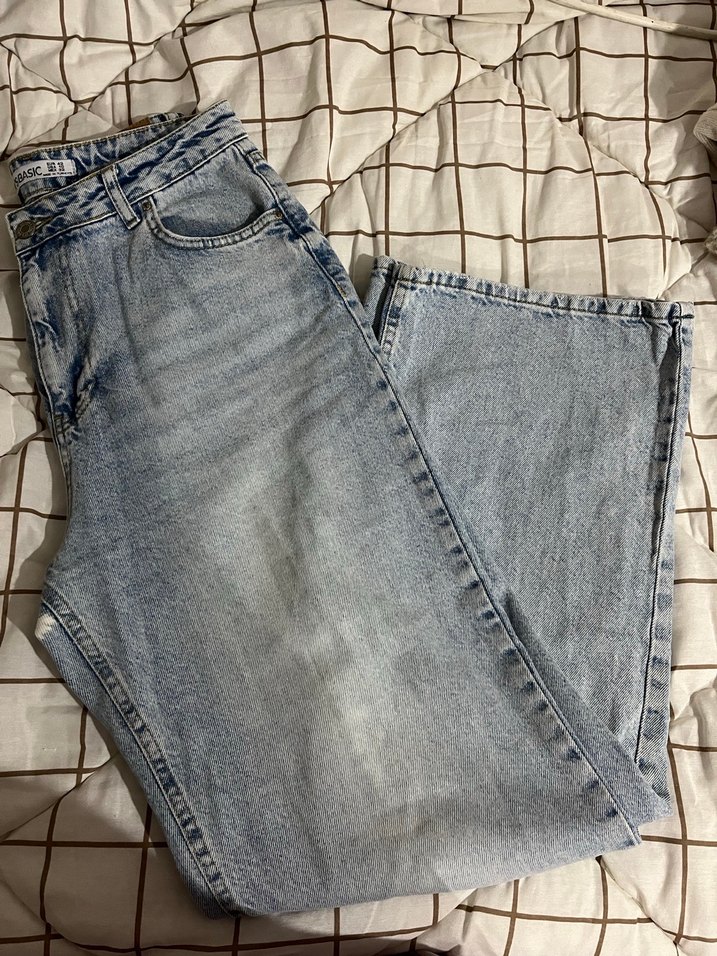 Gri-mavi renkte, loose fit kesime sahip kadın kot pantolon. Midi boy ve rahat denim kumaşla günlük sokak stiline uygun, zahmetsiz şıklık sunar. ağ kisminda beyaz leke tarzi sey var ben yapmadim alirken boyleydi bel boyu=39cm boyu=106cm