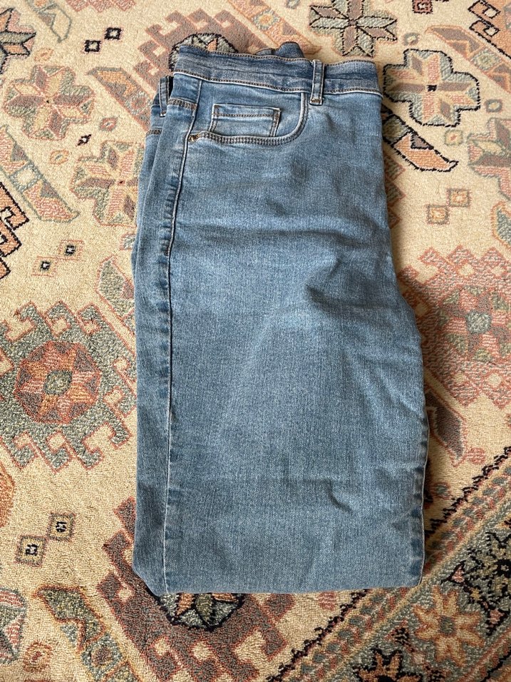 Gri mavi renkte, fermuarlı detaylı, bol kesim midi uzunlukta kadın kot pantolon. Rahat ve günlük kullanıma uygun.