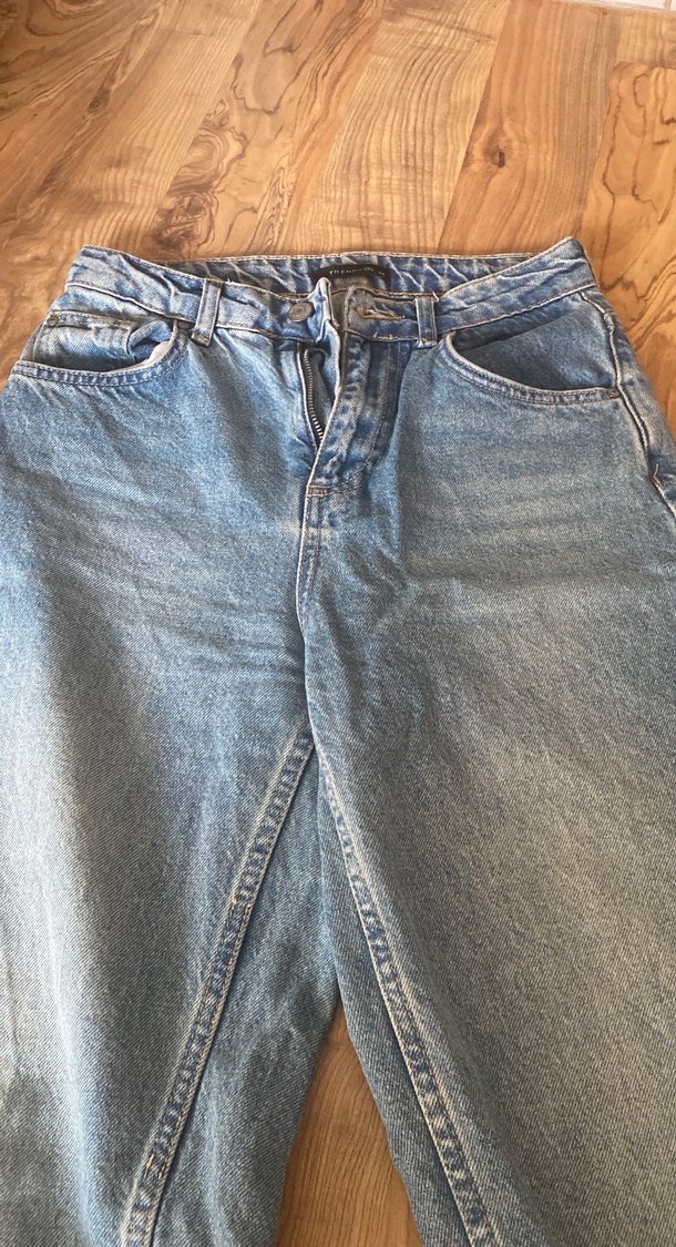 Gri mavi renkte, midi boy, bol kesim kadın kot pantolon. Düz ve desen içermeyen tasarımıyla günlük rahat kullanıma uygun, normcore tarzında.