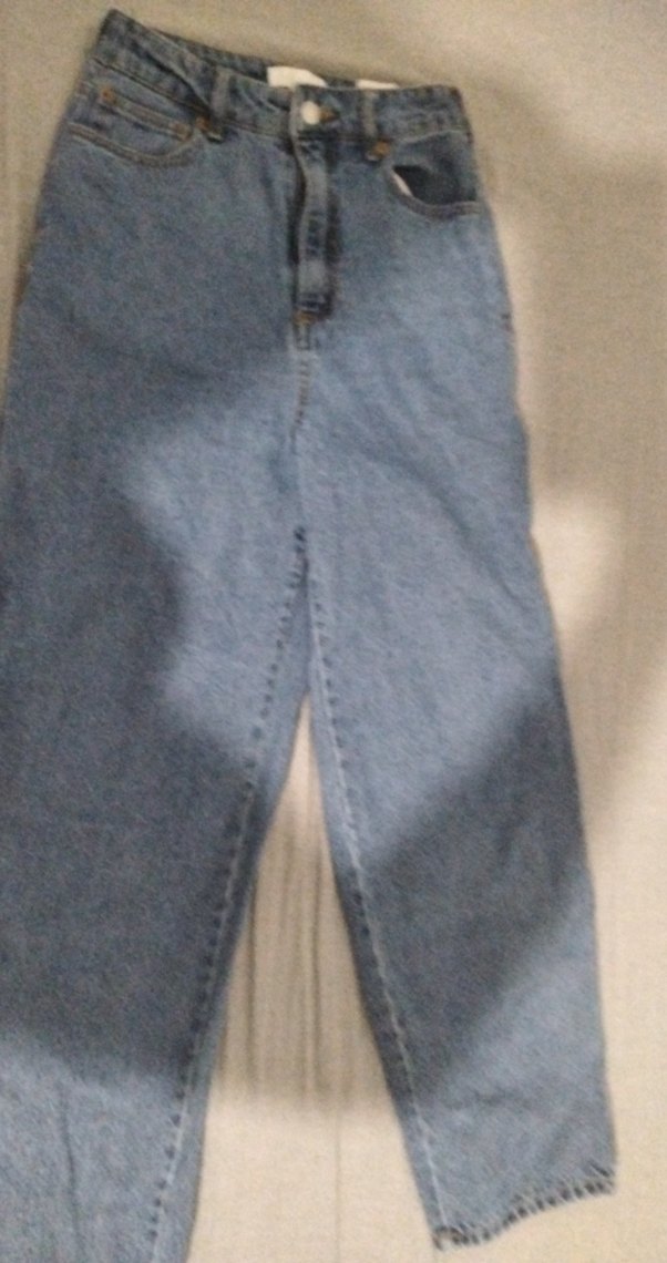 Gri mavi tonlarında, bol kesim midi boy kot pantolon. Desensiz, gündelik rahat stil için uygun, trend ve zahmetsiz şıklık sunar.