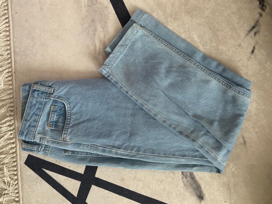 Gri mavi tonlarında, regular fit ve midi boy kadın jean. Günlük kullanıma uygun, sade ve şık görünümlü kot pantolon.