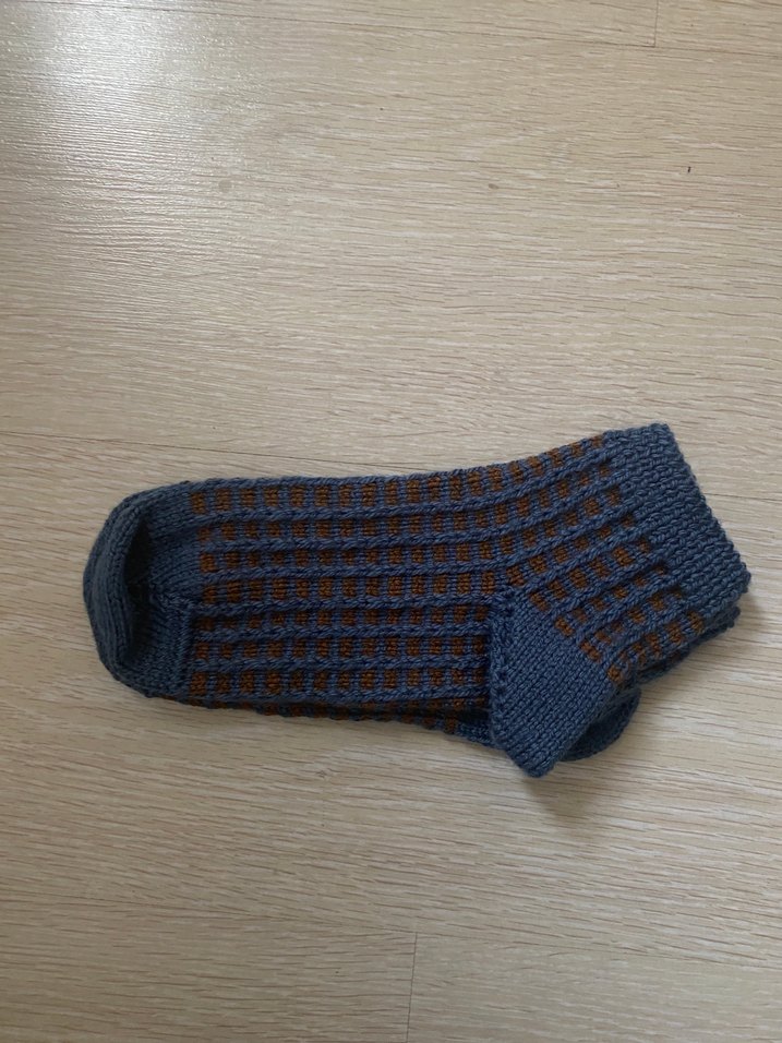 Gri ve mavi renklerde, dokulu örgü deseniyle rahat ev patik çorabı. 40 bedendir. Hiç kullanılmamıştır. El örmesidir.