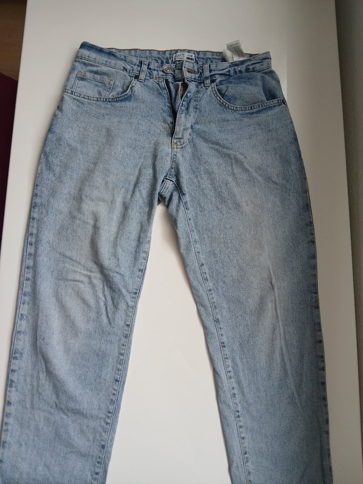 Gri-mavi renkte, rahat kesim ve normal midi boyda, desen içermeyen kadın jean pantolon. Günlük kullanıma uygun, soft denim kumaştan üretilmiştir. kalıp geniştir