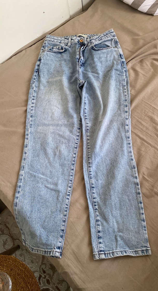 Gri-mavi denim kumaştan, rahat kesim ve midi boyda kadın kot pantolon. Günlük kullanıma uygun, zahmetsiz şıklık sunar.