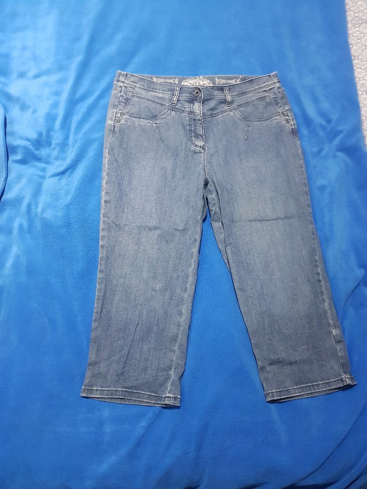 süper dinamic jean kapri. Gri tonlu mavi renkte, midi boy ve salaş kesime sahip kadın kot kapri pantolon. son fotoda gösterdim sol arka cebin yanında çizik şeklinde ufacık defosu var Günlük kullanıma uygun, sade ve rahat sokak stili marka temsilidir