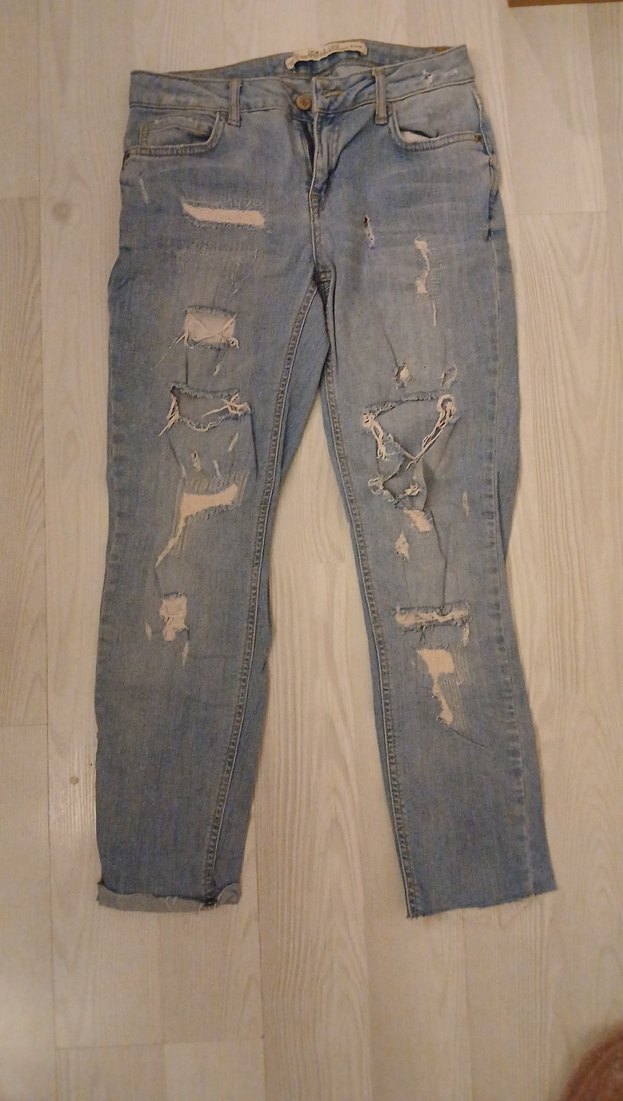 Gri Mavi Yırtık Kadın Denim Pantolon