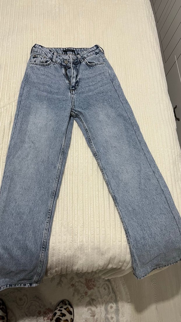 Gri Mavimsi Geniş Paça Kadın Kot Pantolon