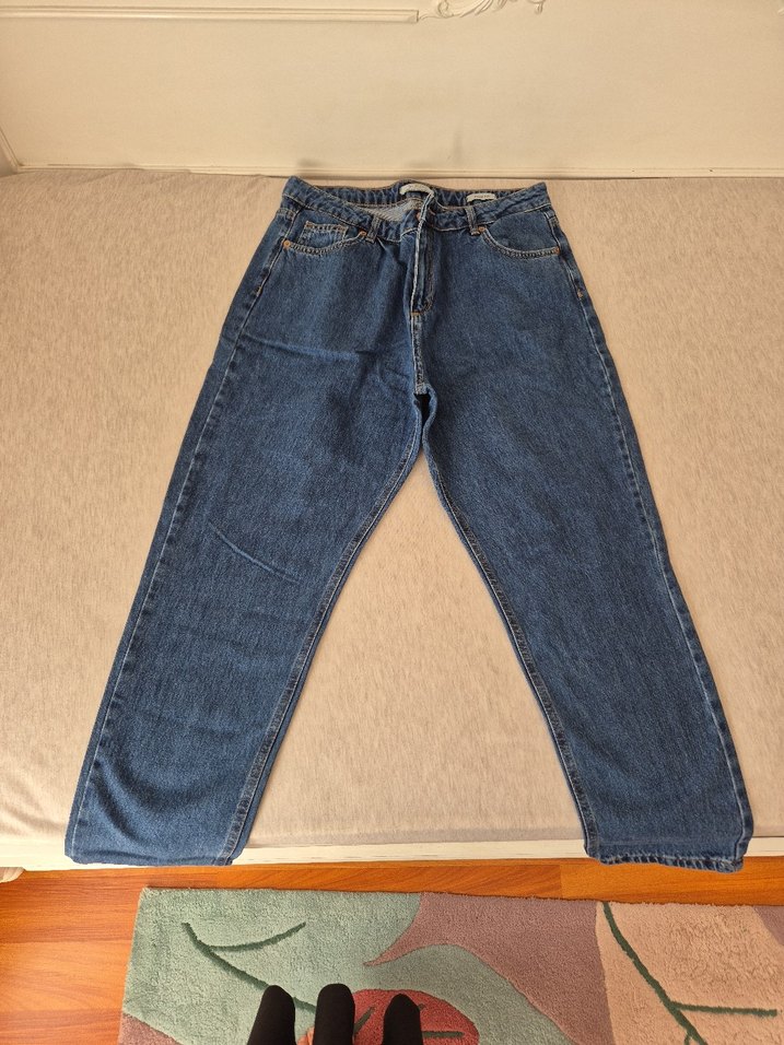 Gri mavimsi renkte, rahat kesim midi boy kot pantolon. Desensiz, günlük kullanıma uygun, zahmetsiz şıklık sunar.
