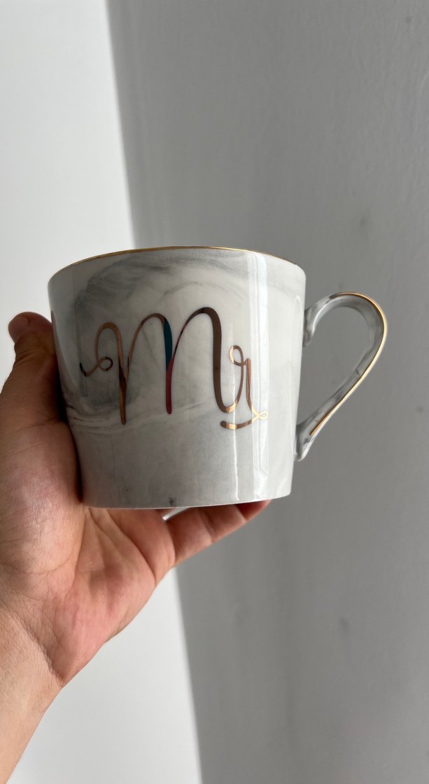 Gri mermer desenli, altın detaylı beyaz porselen kupa, şık ve zarif bir görünüm sunar. ☕temiz ve sorunsuz