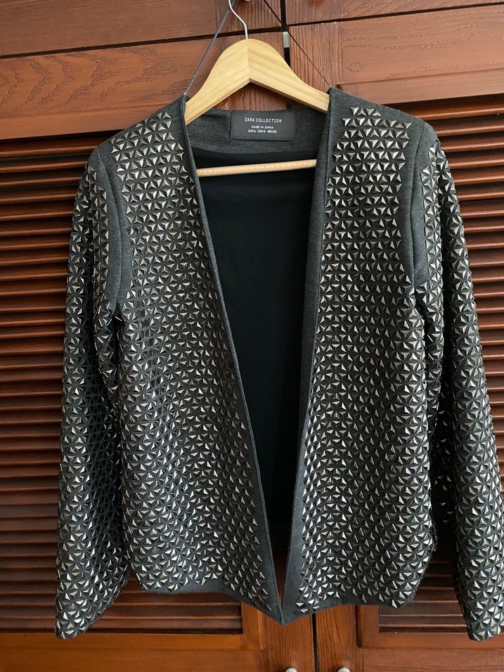 Metal baskılı, uzun kollu, gri kadın ceket. Regular fit kesimle çağdaş bir tarz sunar. Özellikle davetlerde, kutlamalarda kullanılabilecek bir cekettir.
