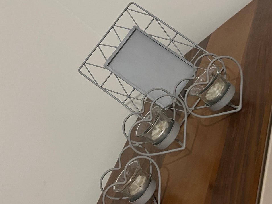 English homedan aldım yepyeni Gri metal kalp şeklinde tasarlanmış, cam mumluklu tealight mumlar için uygundur. Ortama şık bir hava katar yanına da çerçevelik hediye vericem
