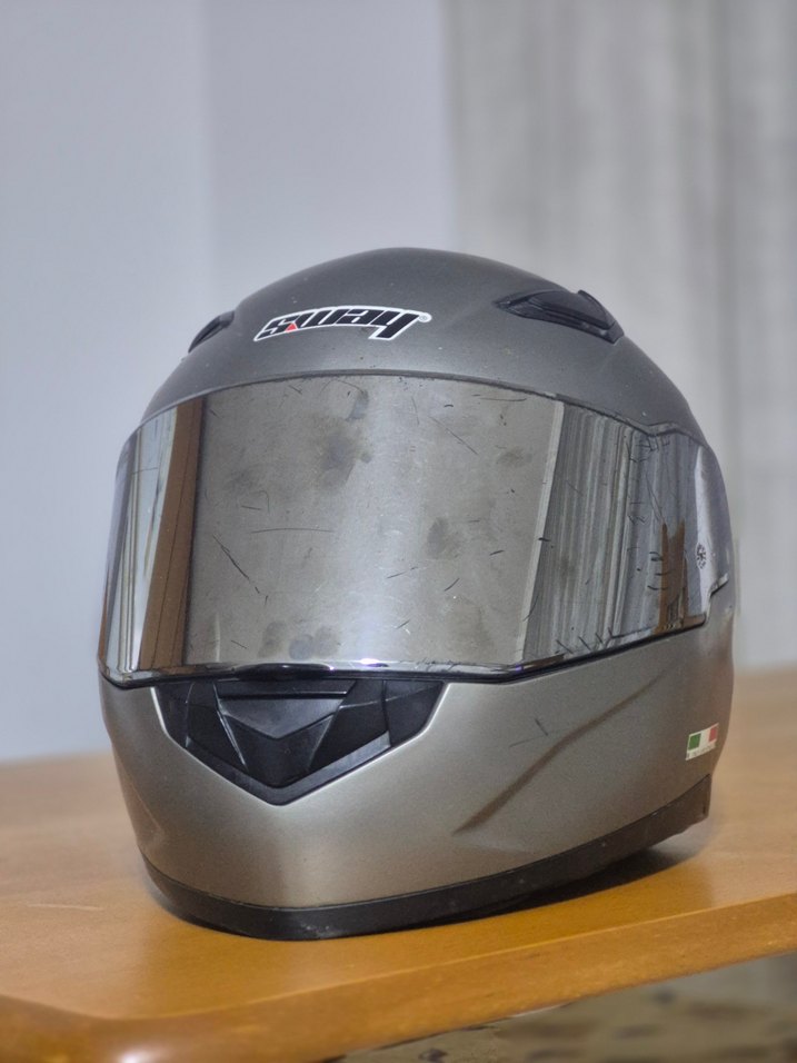 Gri Metal Kaplamalı Motosiklet Kaskı ayna vizöt