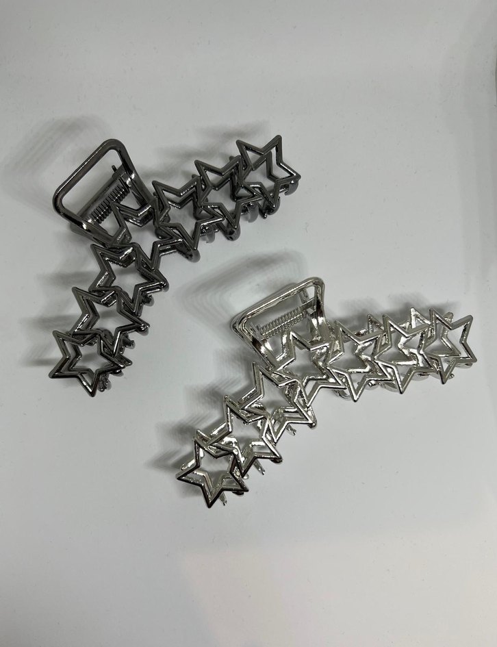 Gri Metal Kıskaç Yıldızlı Tokalar Y2k Gotik
