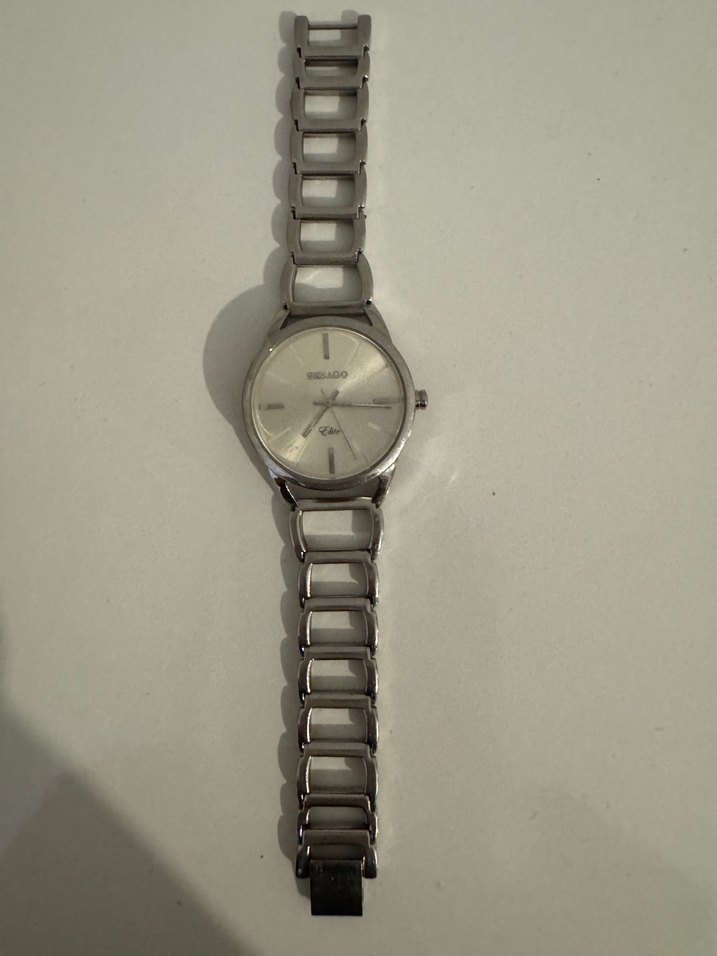 Gri metal belted kordon ve bej kadranlı, çağdaş tarzda minimalist kadın saati, hafif nostaljik dokunuşla. ⌚caminda cizikler vardir, kutusunu kaybettim ayarini kendime göre yapmiştim