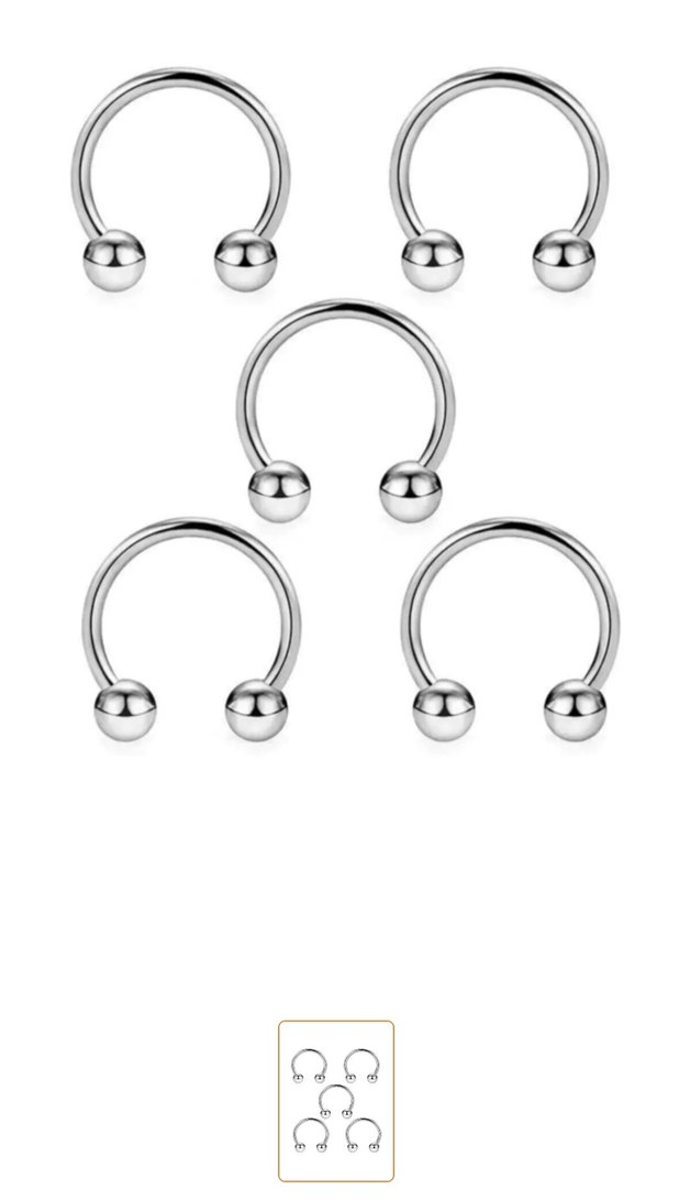 Gri metalden yapılmış, halka şeklinde, tokalı uçlara sahip minimal punk tarzda sade ve temel piercing seti. ⚙️ septum piercing