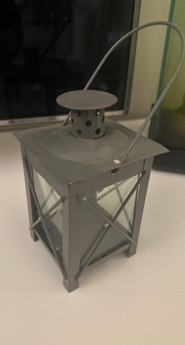 Cam panelli ve taşıma saplı gri metal mumluk. Mumları güvenle yerleştirmek için tasarlanmıştır. ️