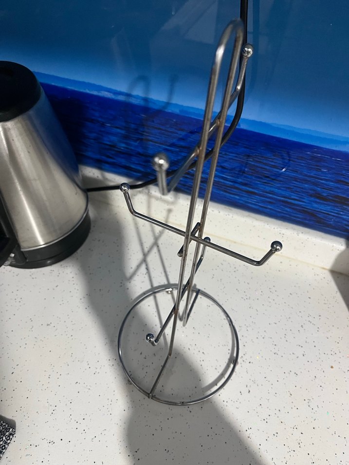 Yuvarlak tabanlı gri metal kupa askısı gri metalden yapılmıştır. İnce tasarımıyla mutfak tezgahına uygun.