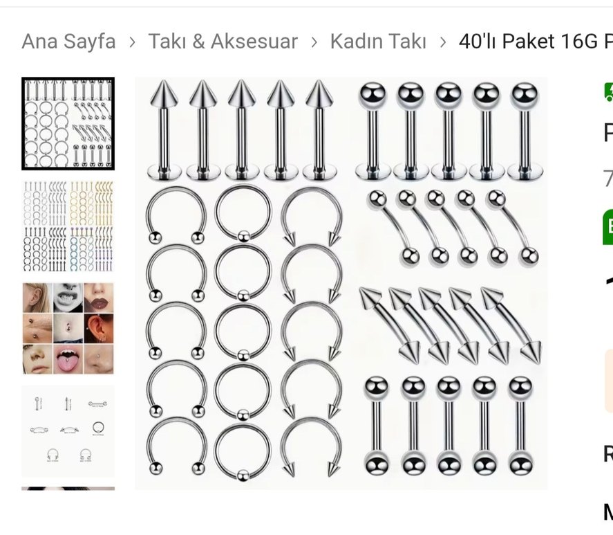 Gri Metal Rock Punk Kadın Piercing Seti 20li
