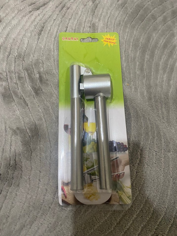 Gri metalden yapılmış bu sarımsak ezici sağlam yapısıyla mutfakta kolay ezme sağlar. Kompakt boyutu kullanımı ve temizliği kolaylaştırır.
