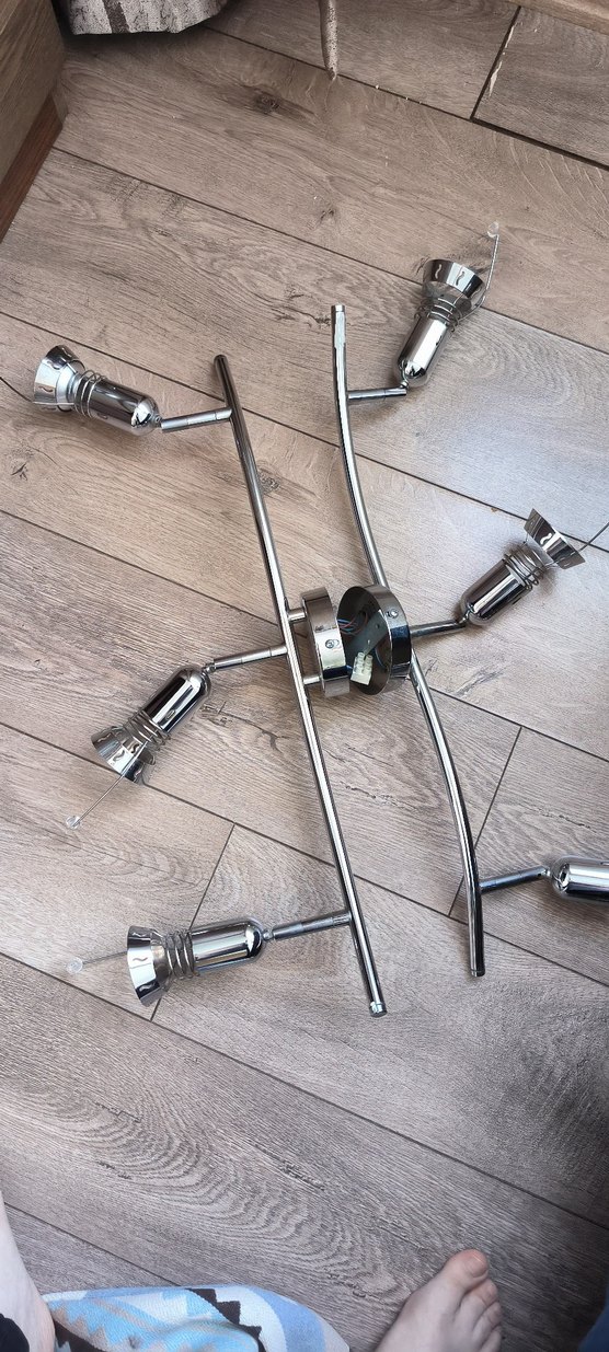 Gri metal tavan lambası, ayarlanabilir kolları ve ışık tutucuları ile modern bir aydınlatma sağlar. sadece ikisi satılıyor. biri sapasağlam. ikinci ufak tamir istiyor, zor birşey değil(elektrikçi ye sordum. sadece su beyaz detaylı değiştirmek gerekiyor).ev taşındım ondan başka kulanmadım, uğraşmadım. alana hayırlı olsun