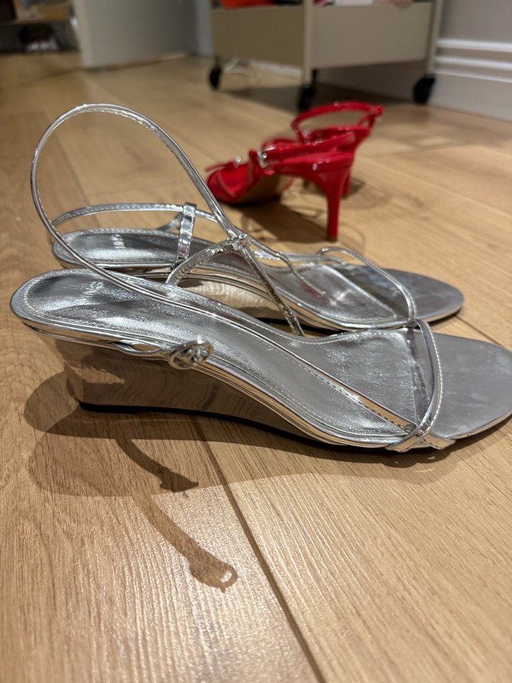 Gri Metal Tokalı Dolgu Topuk Kadın Ayakkabı