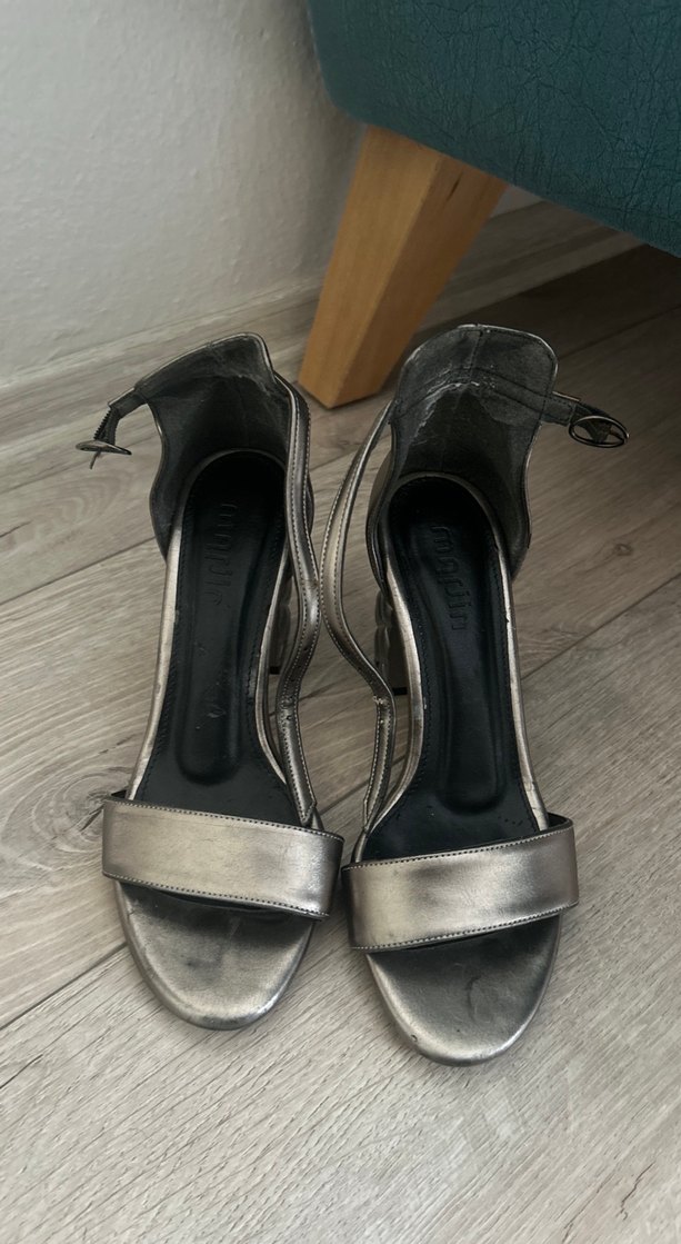 Gri metal tokalı ince topuklu kadın ayakkabı, romantik akşamlar için çağdaş tasarıma sahip. Düz ve desensiz, avangart ve Paris tarzını birleştirir.