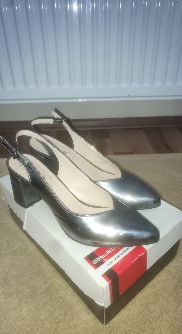 Gri Metal Tokalı Kadın Topuklu Ayakkabı