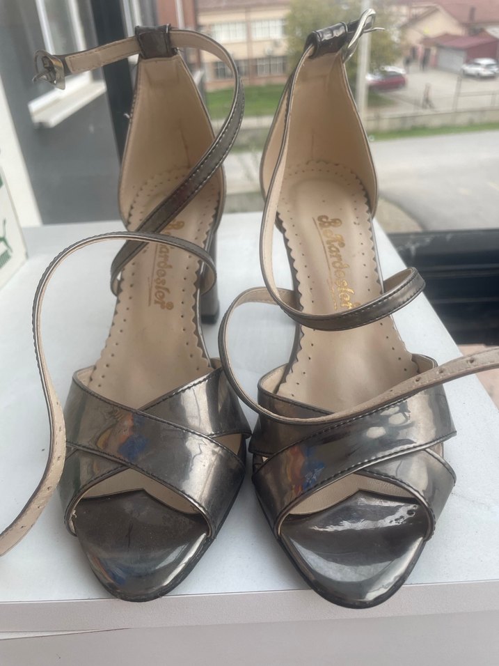 Gri Metal Tokalı Stiletto Kadın Abiye Ayakkabı