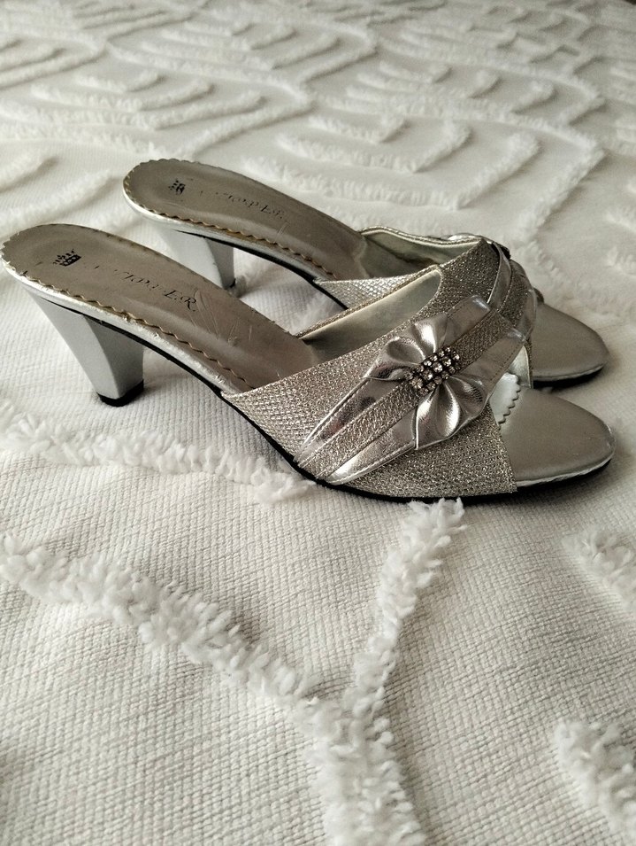 Gri metal malzemeden yapılmış, yılan desenli ve tokalı blok topuklu kadın ayakkabısı. Düğünler için şık ve modern klasik bir seçim.