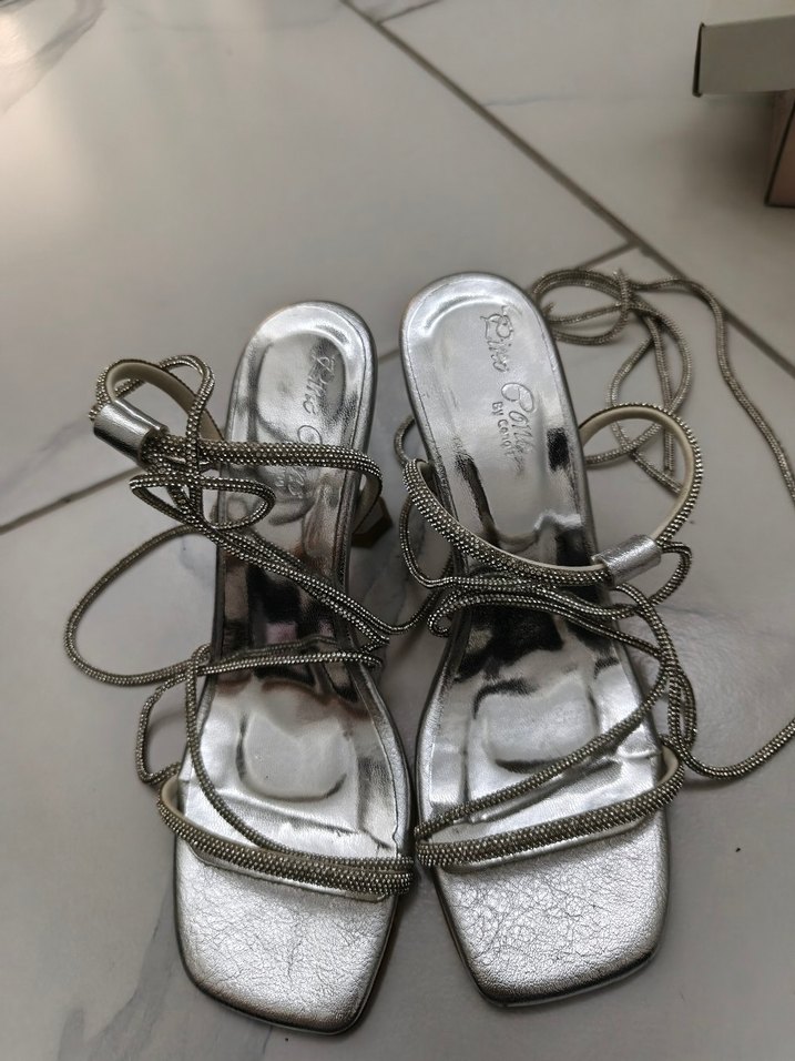 Gri metalik yüzey ve yılan derisi desenli, toka detaylı stiletto topuklu kadın akşam ayakkabısı, düğünler için bohem tarzda.36 numara sadece bir kez giyildi.