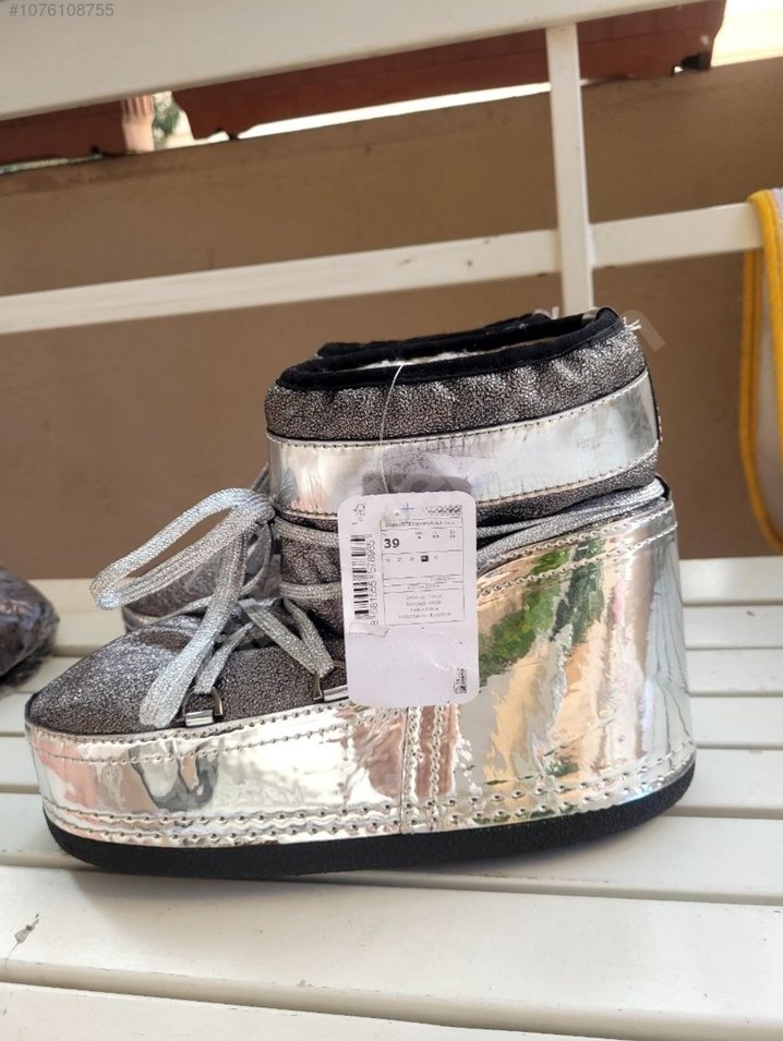 Gri Metalik Dolgu Topuklu Kadın KAR Botu