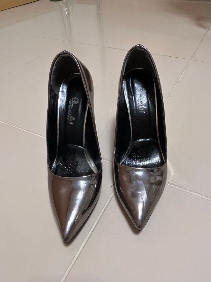 Gri metalik, ince topuklu stiletto. 37numara bambi marka.