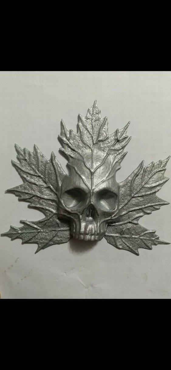 Metalik renkli, yaprak desenli ve kafatası figürlü gotik tarzda broş. Günlük kullanıma uygun rock punk havası taşıyor.