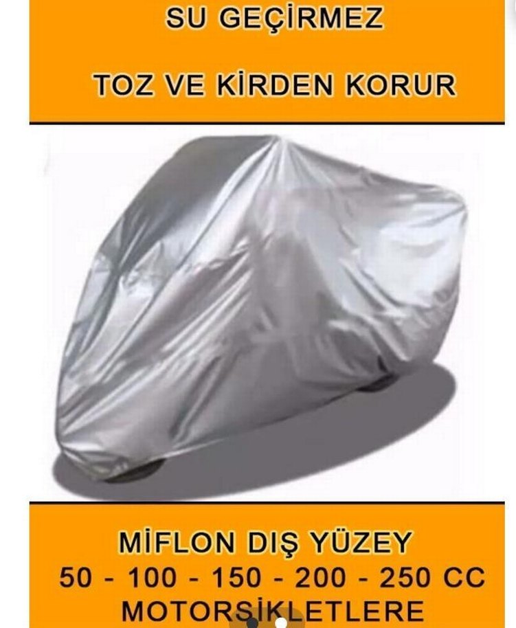 Gri yapılmış motosiklet örtüsü su geçirmezdir ve toz ile kirden korur. Miflon dış yüzeye sahiptir ve 50-250 cc arası motosikletlere uygundur. ️