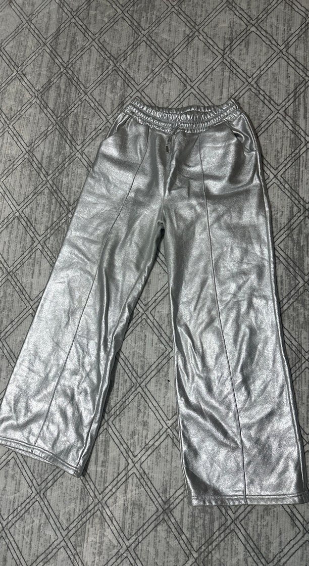 Gri metalik, midi boy, salaş kesim kadın pantolon, elastik bel detayına sahip, günlük kullanıma uygun şık ve rahat bir tasarım. ✨