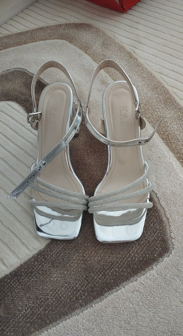Gri metalik renkli,blok topuklu kadın abiye ayakkabılar. Tokalı askısı ve çağdaş tasarımıyla düğünlerde kullanıma uygundur.