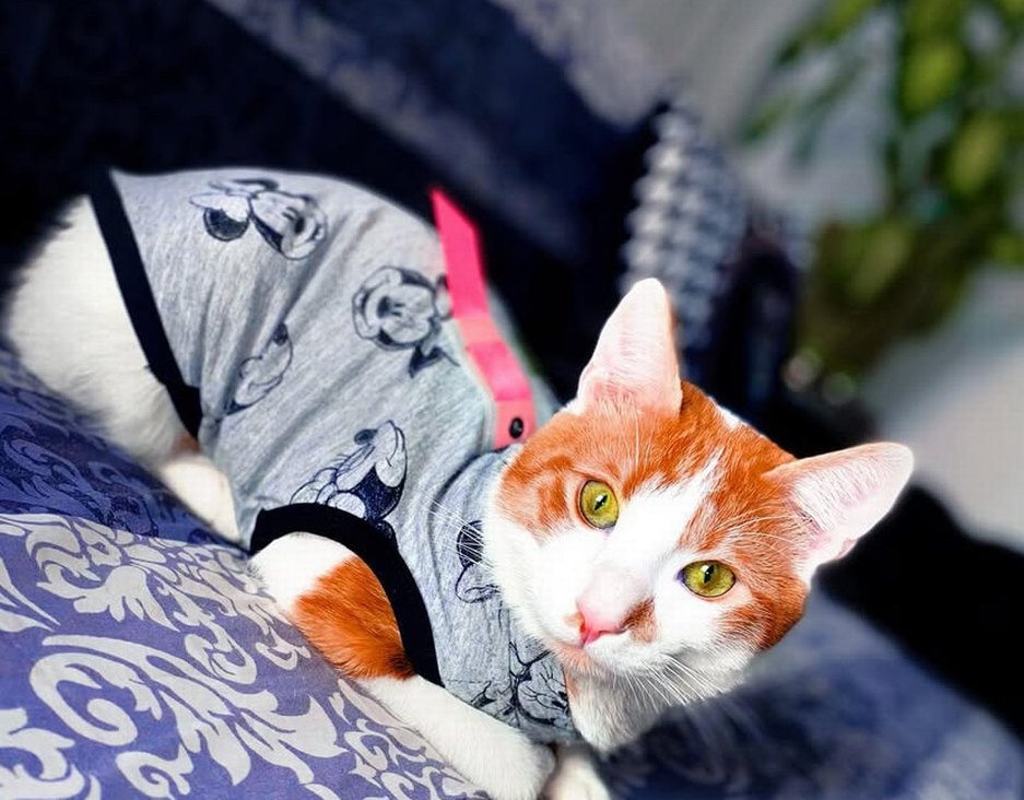 Gri renkte, renkli Mickey Mouse desenli kedi & köpek kıyafeti,