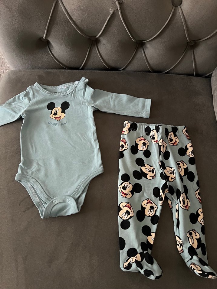 Gri Mickey Mouse Baskılı Bebek Takımı