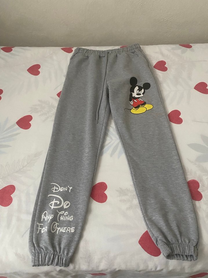 Gri Mickey Mouse Baskılı Düğmeli Kadın Eşofman